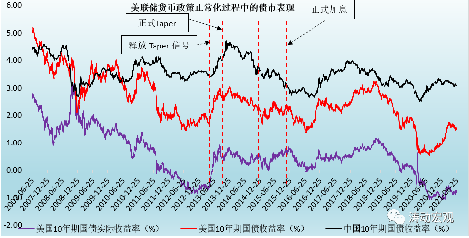1、在美聯(lián)儲向市場釋放Taper信號和正式啟動Taper過程中,美國10年期國債收益率趨于快于上行。