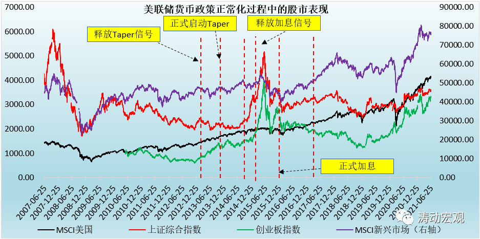 2、而在Taper以及加息的預(yù)期過程中,受資本外流、本幣貶值等因素影響,新興市場股市的波動幅度有所擴大,且傾向于下挫。