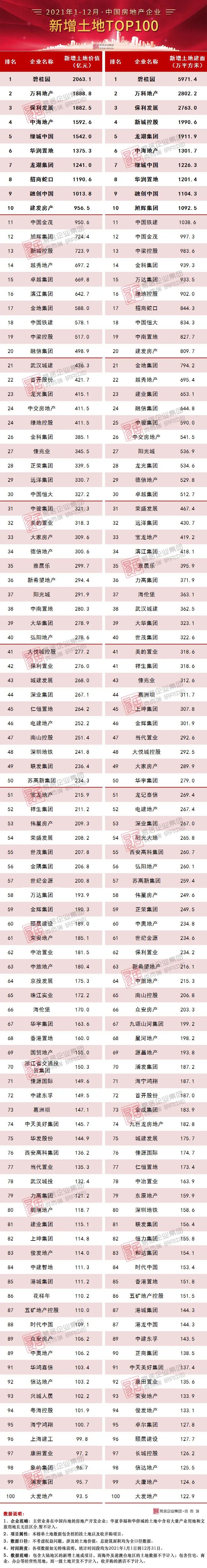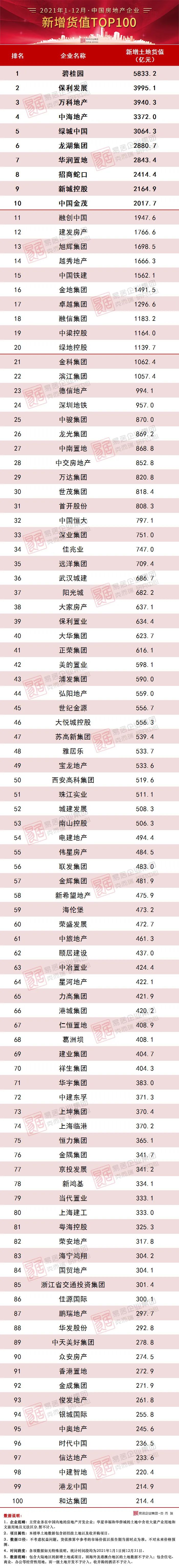 2021年,新增貨值百強門檻為214.4億元,同比微降3%,新增土地價值、新增土地建面的百強門檻分別為83億元和152.8萬平方米,其中金額同比上升13%,建面則降20%。新增土儲超過2000億的房企共有10家,較去年減少6家,可見在現金流持續吃緊的壓力下,企業投資力度明顯收緊。