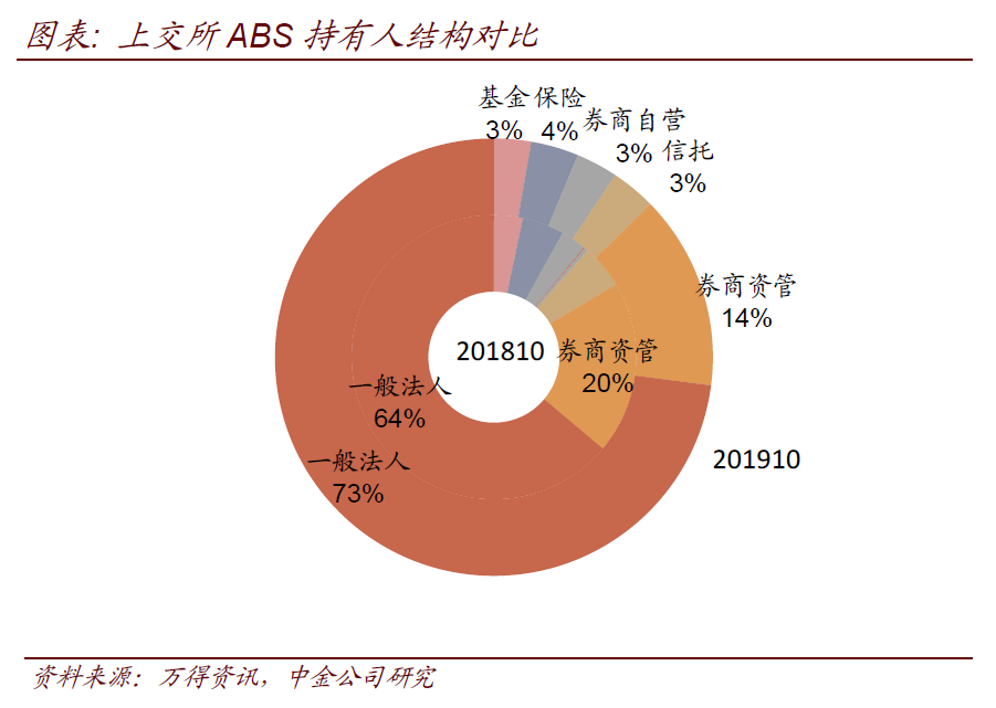 截至2019年10月末,各類資產支持證券持有人結構如下: