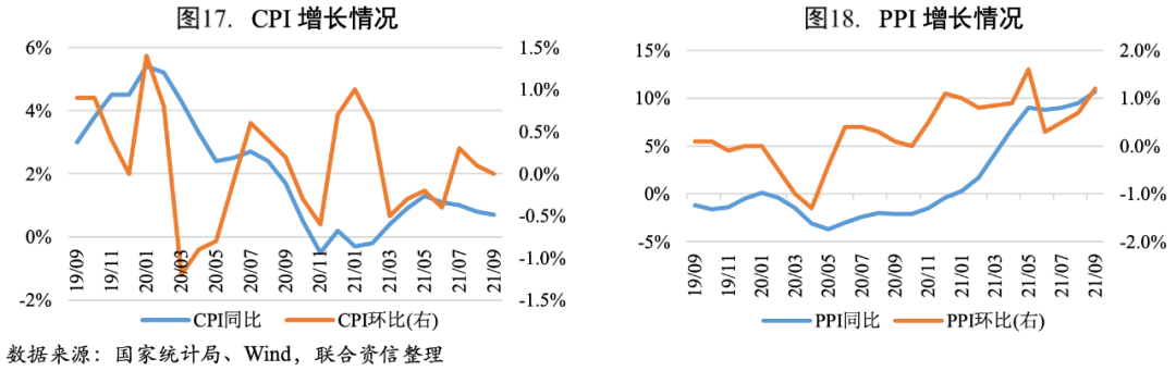 ?三季度CPI各月同比持續回落;PPI持續上漲,主要受石化、煤炭、金屬價格上漲影響較大。社融存量增速逐月回落,M2-M1剪刀差進一步走闊。
