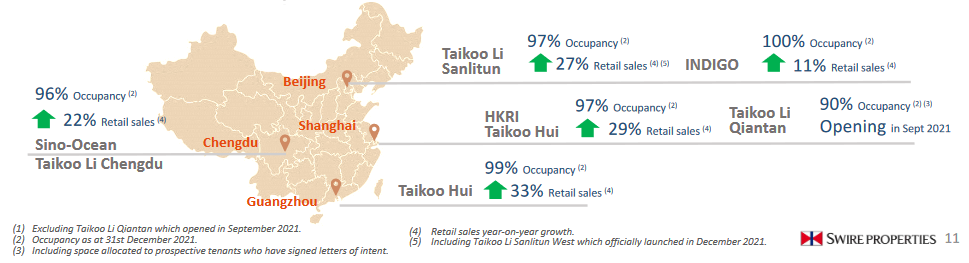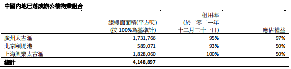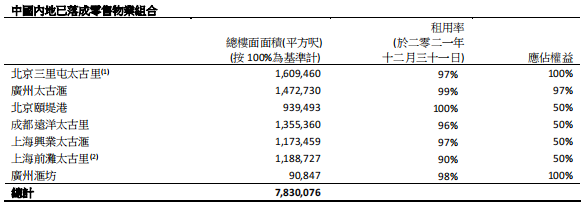 截至至2021年12月底,在內(nèi)地之自占已建成收租物業(yè)組合增加至約810萬平方呎。