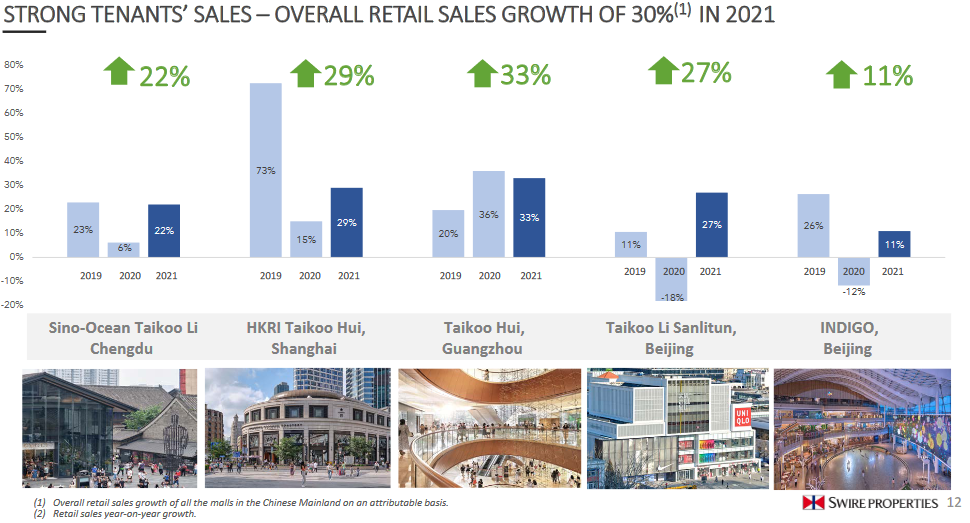 收入增長3%,租戶銷售額上升20%,未來商場將進(jìn)一步加強(qiáng)其定位,并引入更多元化的奢侈品牌。由于本地市場對奢侈品的需求強(qiáng)勁,加上翻新工程于非營業(yè)時間分階段進(jìn)行,將租戶所受的影響降至最低,因此,租戶銷售額上升20%。經(jīng)過翻新的區(qū)域?qū)⒂?022年中起分階段重開;