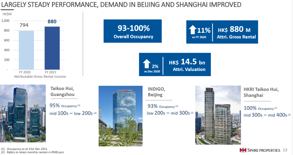 租金及相關(guān)收入同比增幅13%。截至2021年底的出租率為95%。