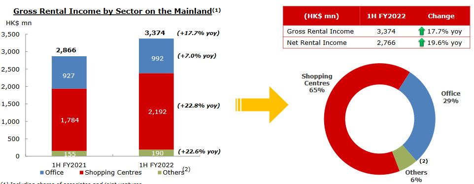 內(nèi)地租賃收入:20.97億港幣(+15%)