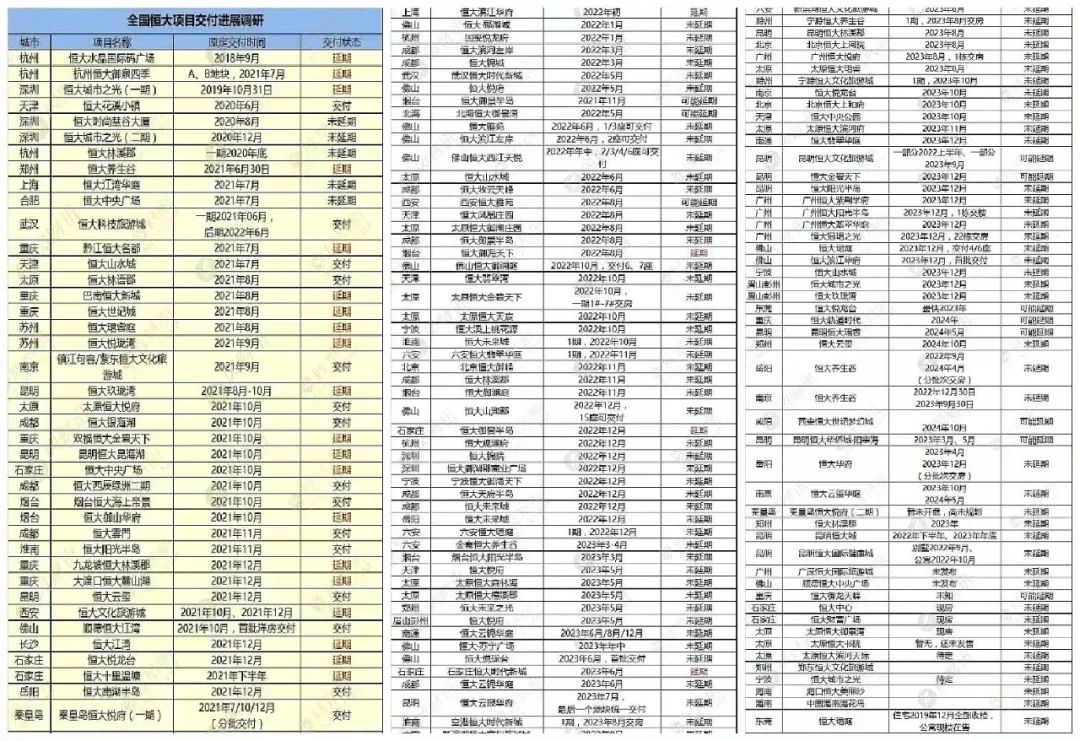 這是恒大全國樓盤停工、延期的冰山一角。