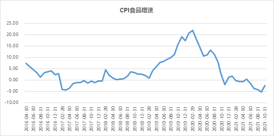 而CPI食品類增速在9月創(chuàng)出-5.2%的階段新低后,10月出現(xiàn)了反彈。豬肉價格下跌拖累了CPI食品項。同樣,近期豬肉價格的反彈也帶動了10月食品項回暖。