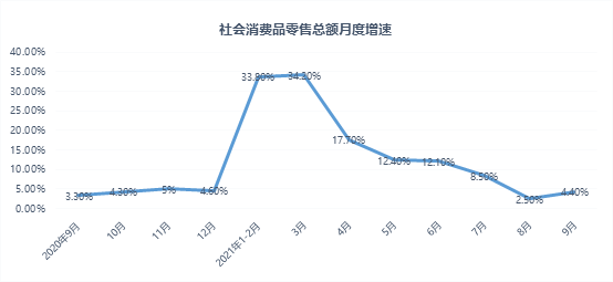 數(shù)據(jù)顯示,今年我國第三季度GDP增速今為4.9%,低于預(yù)期。9月份,社會消費品零售總額36833億元,同比增長4.4%。8月份增速更為慘淡,僅為2.5%,創(chuàng)近一年來新低。