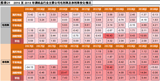 如海天味業(yè)18年全年上漲31.92%,中炬高新上漲20.86%,涪陵榨菜上漲31.6%,千禾味業(yè)雖然全年漲幅為負,但上半年仍上漲37.5%。