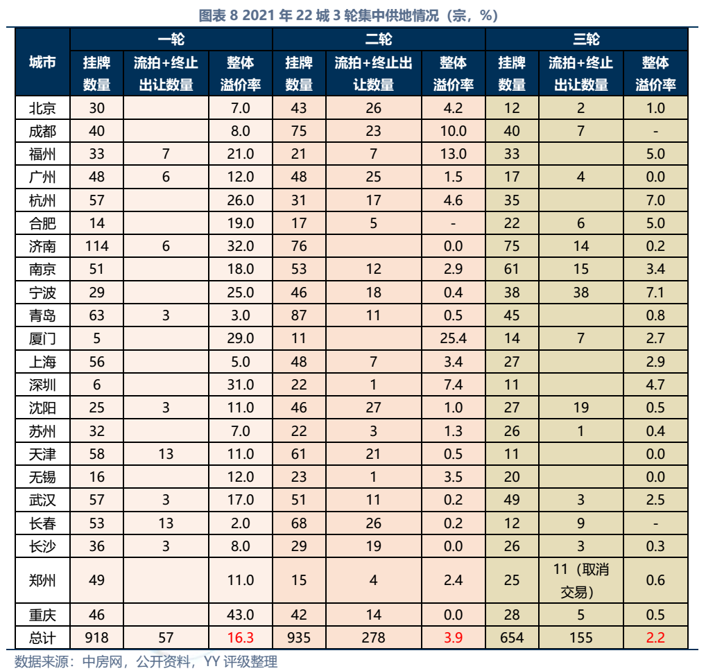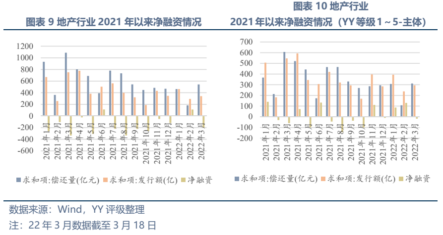 因此近年來(lái)房地產(chǎn)企業(yè)面臨從經(jīng)營(yíng)端到融資端的前后夾擊,其中經(jīng)營(yíng)端包括限購(gòu)、限貸、限價(jià)、減緩備案、預(yù)售資金監(jiān)管等,融資端包括打擊信托融資、三道紅線、銀行貸款集中度管理等,融資壓力下房企拿地?zé)崆橄陆担诙啞⒌谌喭僚挠隼洌僚膬r(jià)格走低意味著房企手中的存貨價(jià)值縮水,房企債務(wù)壓力進(jìn)一步加大,拿地積極性進(jìn)一步降低…且在此過(guò)程中,不僅原本財(cái)務(wù)結(jié)構(gòu)欠穩(wěn)健的企業(yè)風(fēng)險(xiǎn)直接被刺破,一些相對(duì)面臨融資環(huán)境沒(méi)那么惡劣的企業(yè)也開(kāi)始收縮杠桿,21年下半年YY等級(jí)1~5-投資級(jí)地產(chǎn)主體凈融資-226億元。