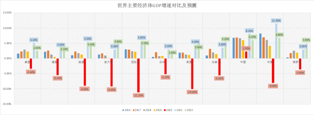 上圖是國際貨幣基金組織對于過去五年及未來兩年GDP增速的對比與預(yù)測。國際貨幣基金組織認(rèn)為:新冠疫情對2020年全球經(jīng)濟(jì)、貿(mào)易和民生均產(chǎn)生較大影響,2020年全球GDP預(yù)計(jì)將同比實(shí)際縮減3.5%。中國 GDP增速表現(xiàn)在全球一枝獨(dú)秀,很有可能是全球主要經(jīng)濟(jì)體里唯一正增長的國家。