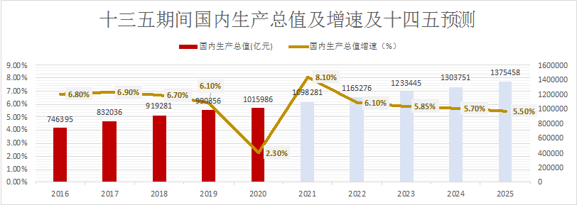 預(yù)計(jì)十四五末GDP增速放緩至5.2%-5.7%之間。