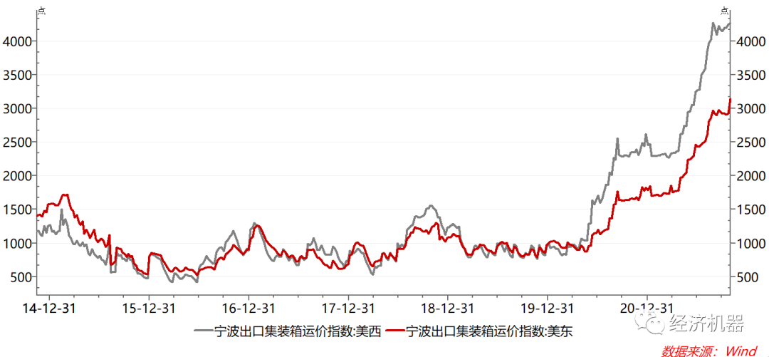 • 疫情沖擊下,供應鏈危機比預期更嚴重。疫情沖擊下,全球出現了嚴重的供應鏈危機。年初,市場普遍認為,隨著疫苗接種完成和經濟活動恢復,供應鏈斷裂的情況會出現緩解。但下半年以來,供應鏈危機非但沒有緩解,反而呈現愈演愈烈走勢,歐美多個港口出現貨物積壓,缺少卡車司機將貨物運離。電力、原材料短缺是供應鏈危機的重要原因。盡管疫情整體上得到有效控制,但部分西方國家將“疫苗簽證”政治化,阻礙了國際間貨物通關和人員流動,惡化了供應鏈危機。寧波集裝箱出口運價指數國慶后再創新高,顯示近期供應鏈危機并未有效緩解。目前供應鏈危機已經成為全球性問題,除非各國間協調應對,否則未來大概率會進一步惡化。
