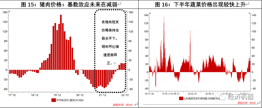 基礎情景下,在供應鏈危機未有實質好轉情況下,隨著豬肉價格拖累消失,明年下半年CPI同比漲幅有望接近3%。極端情景下,部分外生沖擊加大,明年下半年CPI有望達到4%甚至更高水平。