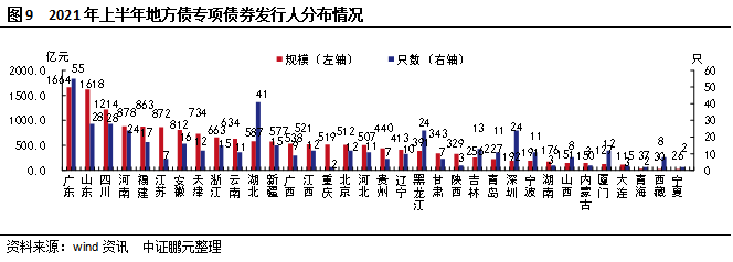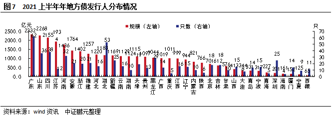 (5)廣東、山東等省份發(fā)行靠前,四川發(fā)行較為突出。