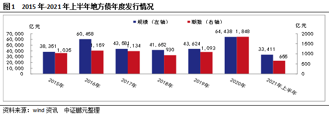 2021年上半年,由于國(guó)內(nèi)經(jīng)濟(jì)處于穩(wěn)增長(zhǎng)壓力最小窗口期,地方債穩(wěn)增長(zhǎng)的動(dòng)力減弱,同時(shí),對(duì)專項(xiàng)債項(xiàng)目審查趨嚴(yán),專項(xiàng)債發(fā)行節(jié)奏明顯放緩,導(dǎo)致地方政府債券發(fā)行規(guī)模有所收縮。具體來(lái)看,上半年,我國(guó)地方債共發(fā)行655只,同比下降35.78%,規(guī)模33,411.44億元,同比下降4.17%,實(shí)現(xiàn)凈融資19,234.37億元,同比下降32.54%。另外,今年兩會(huì)經(jīng)全國(guó)人大批準(zhǔn),2021年預(yù)算安排新增地方政府債務(wù)限額44,700億元。其中,一般債務(wù)限額8,200億元,專項(xiàng)債務(wù)限額36,500億元。6月份據(jù)報(bào)道,經(jīng)國(guó)務(wù)院批準(zhǔn),財(cái)政部已下達(dá)2021年新增地方政府債務(wù)限額42,676億元,相比之前縮減2024億。其中一般債務(wù)限額8,000億元,專項(xiàng)債務(wù)限額34,676億元。截至2021年6月末,全國(guó)地方政府債務(wù)余額275,849億元,控制在全國(guó)人大批準(zhǔn)的限額之內(nèi);非政府債券形式存量政府債務(wù)1,751億元,比2020年末減少164億元。
