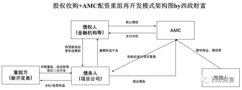 在項(xiàng)目股權(quán)結(jié)構(gòu)清晰、項(xiàng)目易掌控的情況下,可考慮直接收購(gòu)項(xiàng)目公司的股權(quán),清退原股東,并與AMC合作進(jìn)行重組再開發(fā)。