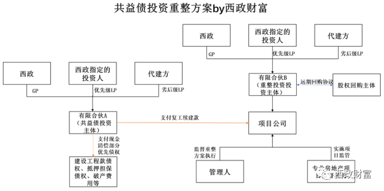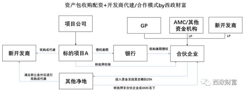 1. 由于AMC并無開發(fā)能力,但是基于目前民營(yíng)開發(fā)商普遍的信用風(fēng)險(xiǎn)問題,提出希望引入國(guó)央企開發(fā)商作為收購(gòu)方或代建方,由AMC或組建的合伙企業(yè)作為資金紓困主體,負(fù)責(zé)資產(chǎn)收購(gòu)的配資;