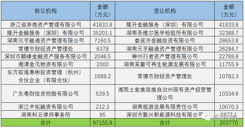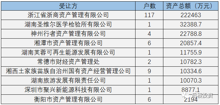 上表所示活躍記投資機(jī)構(gòu)累計成交總額35億元左右,在二級市場受讓端比重達(dá)75%。浙商資管在湖南二級市場受讓端“一枝獨(dú)秀”。