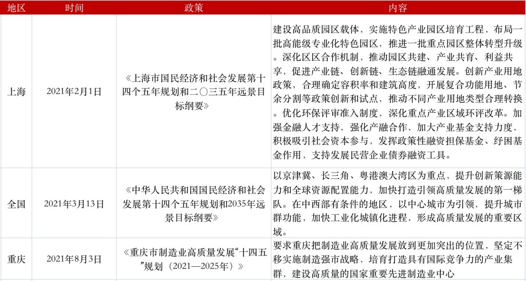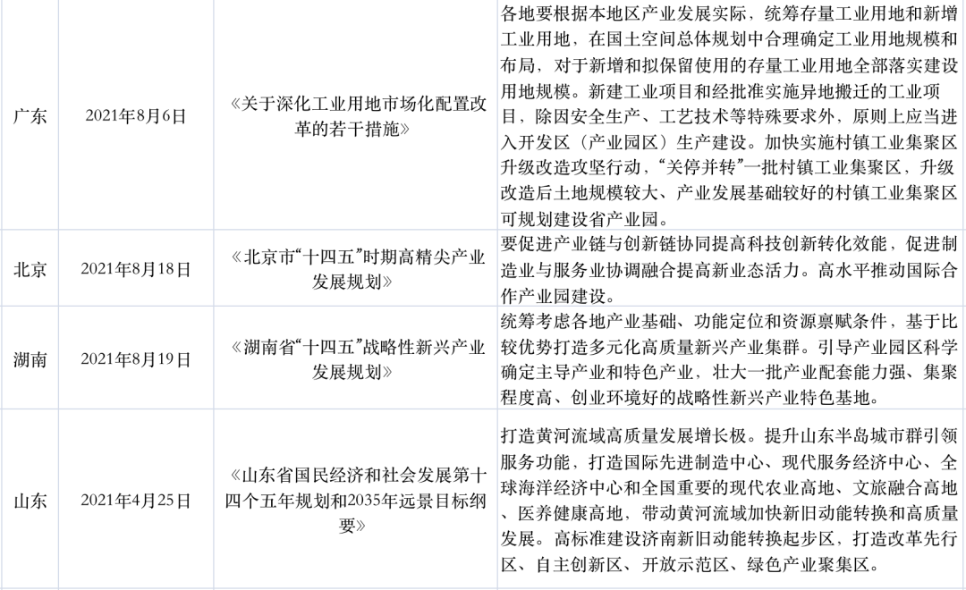 2021年以來(lái)部分產(chǎn)業(yè)地產(chǎn)相關(guān)政策
