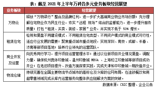 除了在地產開發主業持續鞏固提升基本盤,2021年上半年萬科繼續踐行“城鄉建設與生活服務商”在戰略,在物業服務、住宅租賃、商業開發運營、物流倉儲服務等多元業務板塊發展都進一步穩步推進。