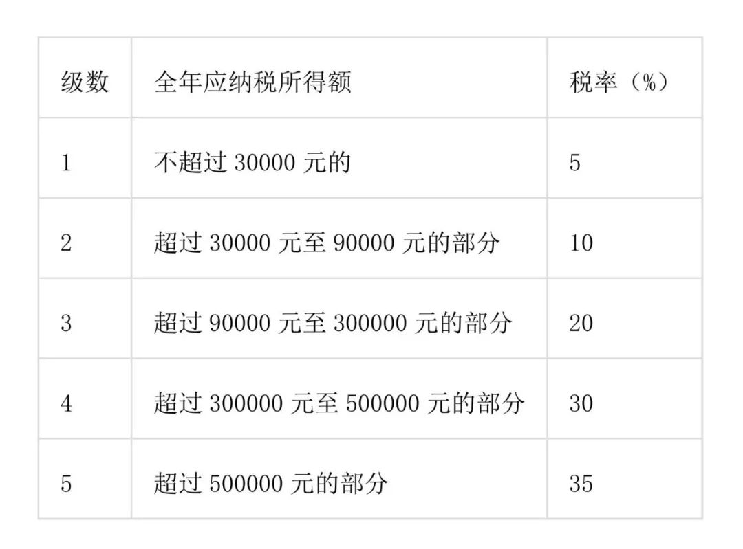 (注:本表所稱全年應納稅所得額是指依照本法第六條的規定,以每一納稅年度的收入總額減除成本、費用以及損失后的余額。)