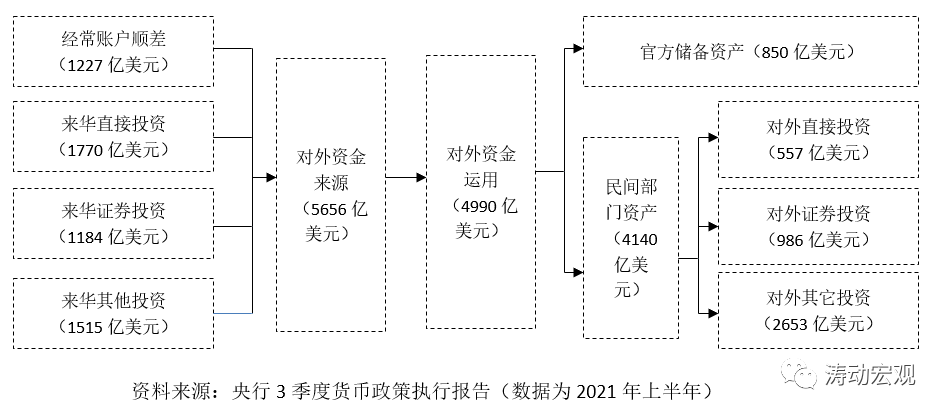 (一)從資金來(lái)源看,主要包括經(jīng)常賬戶順差、來(lái)華直接投資、來(lái)華證券投資以及存貸款等來(lái)華其他投資(如境外銀行同業(yè)和企業(yè)將資金存入境內(nèi)銀行)。