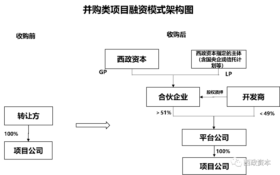 1. 投資架構(gòu):西政資本作為GP與其指定的機(jī)構(gòu)(含國央企、信托計劃等)作為LP共同設(shè)立合伙企業(yè),合伙企業(yè)與開發(fā)商共同成立平臺公司,平臺公司通過股權(quán)收購方式受讓轉(zhuǎn)讓方持有的項目公司股權(quán).