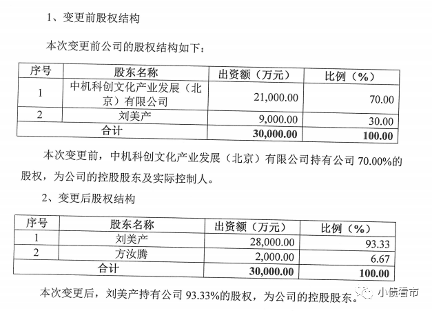 2019年11月,成龍集團70%股權以1萬元價格轉讓給中機文化產業發展(云南)有限公司(以下簡稱“中機文化”),轉讓后中機文化成為成龍集團控股股東,原實控人劉美產持有剩下30%股份。