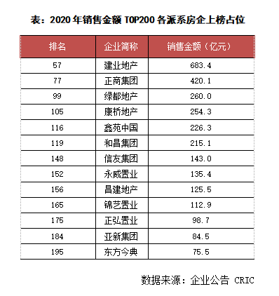 建業、正商位居龍頭,規模斷層較為明顯(部分略)