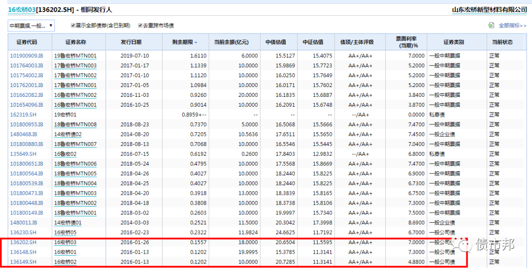 但后來細細一分析,不對啊,宏橋回購方案只是針對3筆馬上要在明年1月份到期的公司債,就連2月份要到期的16宏橋05都不愿意帶上。所以別看這三筆待回購債券的到期收益率高,但是凈價和面值差的不多。