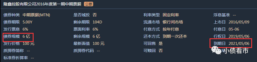 《小債看市》統計,目前隆鑫控股僅存續“16隆鑫MTN001”這一只債券,當前余額6億元,將于今年5月6日到期。