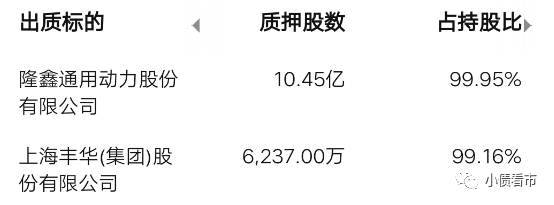 據最新數據,隆鑫控股所持隆鑫通用和豐華股份股權質押率分別達到99.95%和99.16%,并且由于債務逾期,其所持隆鑫通用、豐華股份和重慶農商行股權全部被凍結和輪候凍結。