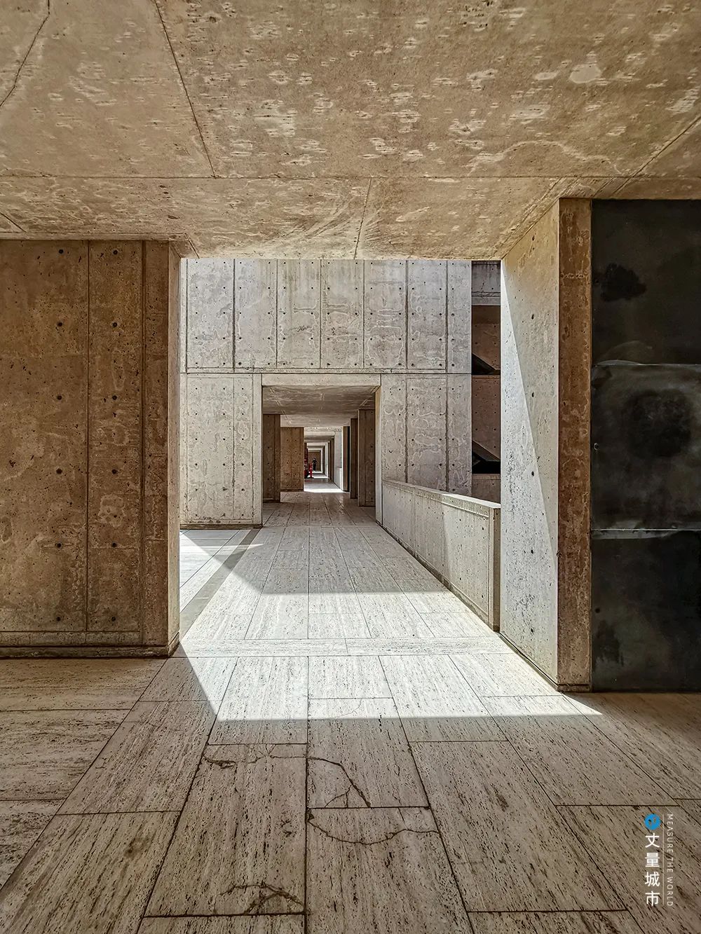 「軸線」「光影」「空間等級序列」「古典的復興并與現(xiàn)代建筑主流的融合」等等,對于薩爾克生物研究所的建筑解讀實在太多了。