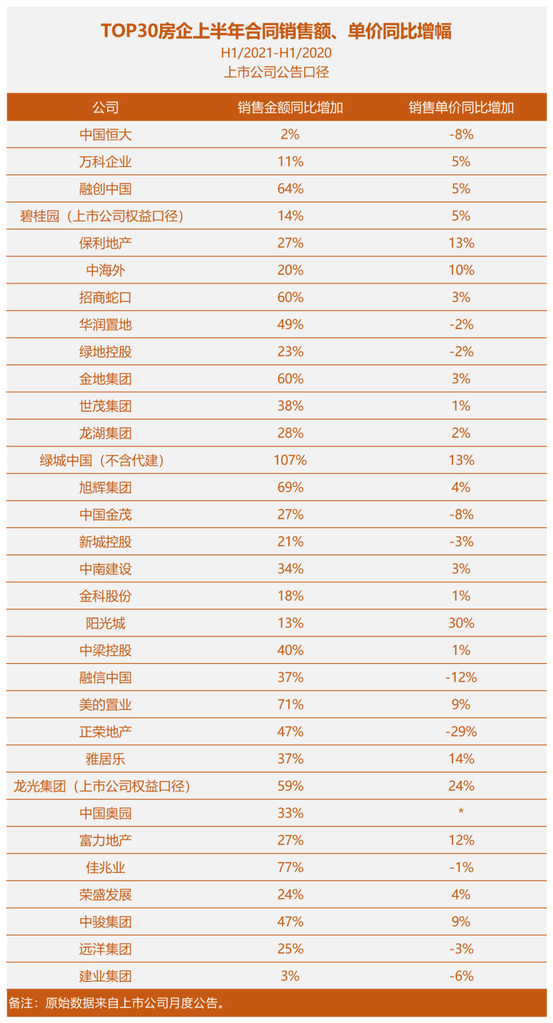 在參詳了房企2021年上半年的TOP30房企銷售數據和宏觀數據之后,我們認為: