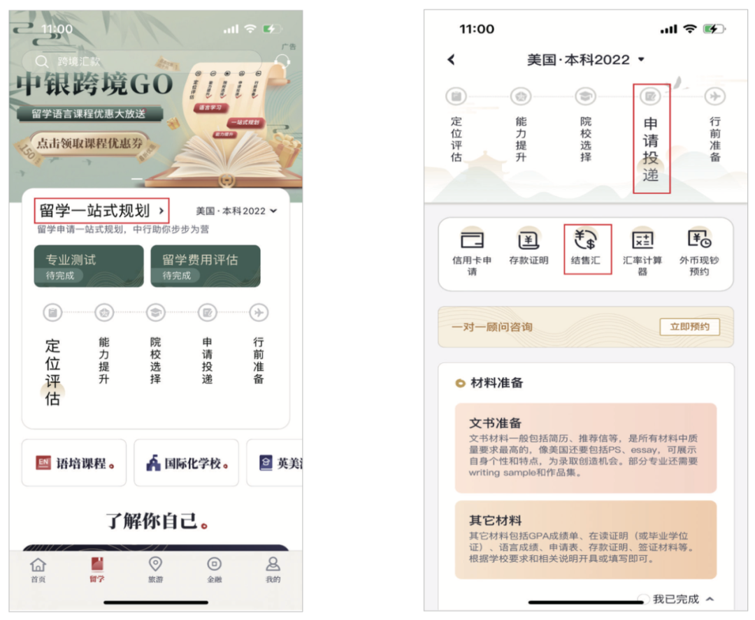 “中銀跨境GO”是一個跨境領域綜合性服務平臺,從場景生態入手,為留學家庭提供權威、專業、有營養的資訊,從資金規劃、賬戶開立、結售匯到跨境匯款等多樣化金融服務,以及簽證、接送機、留學生管家、貴賓廳、語言培訓、境內外實習等覆蓋留學前中后全階段的豐富權益,將貼心的跨境金融服務與優選國際化教育資源無界呈現。