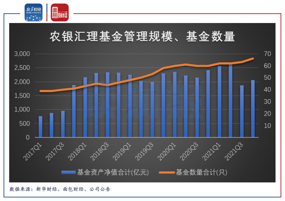 圖2:2017年-2021年農銀匯理基金管理規模、基金數量
