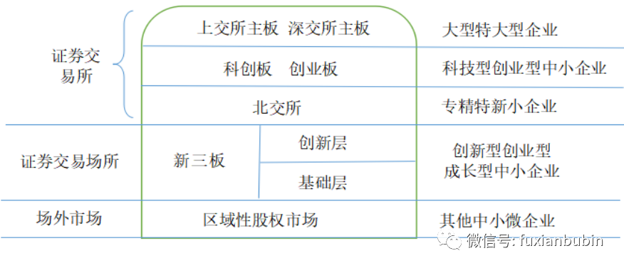 2020年3月1日起實施的新《證券法》,對我國多層次資本市場的法律地位進行了確認,將我國資本市場從1個層級升級為了三個層級,即第七章“證券交易場所”中的第96條規定“證券交易所、國務院批準的其他全國性證券交易場所為證券集中交易提供場所和設施,組織和監督證券交易,實行自律管理,依法登記,取得法人資格。證券交易所、國務院批準的其他全國性證券交易場所的設立、變更和解散由國務院決定。國務院批準的其他全國性證券交易場所的組織機構、管理辦法等,由國務院規定”;第97條規定“證券交易所、國務院批準的其他全國性證券交易場所可以根據證券品種、行業特點、公司規模等因素設立不同的市場層次”;第98條規定“按照國務院規定設立的區域性股權市場為非公開發行證券的發行、轉讓提供場所和設施,具體管理辦法由國務院規定”