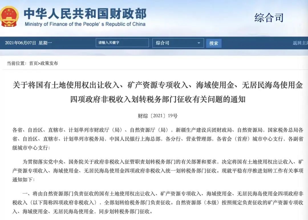 從原來的自然資源部收錢,從2022年開始,要由全國稅務(wù)局來收了。