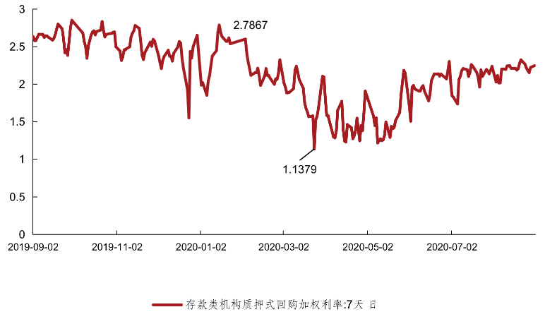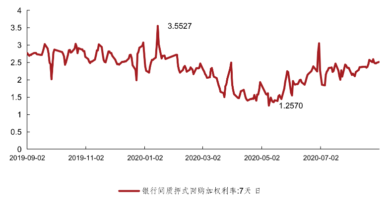 今年4月份以來,M2的規(guī)模逐步提升,至8月份已至213.7萬億的水平,基本達(dá)到央行的合意目標(biāo),因此貨幣政策轉(zhuǎn)向全面寬松的可能性不大。代表了金融機(jī)構(gòu)資金拆入成本的R007(參與證券交易的機(jī)構(gòu)投資者以利率債為質(zhì)押的7天期回購利率)與商業(yè)銀行資金拆入成本的DR007(存款類機(jī)構(gòu)間利率債質(zhì)押的7天期回購利率)的逐步回升也從側(cè)面說明了這一點(diǎn),央行秉承松緊適度的貨幣政策,如果貨幣流動(dòng)性過于寬松就回適當(dāng)調(diào)緊,目前商業(yè)銀行及其他金融機(jī)構(gòu)的資金成本已不像數(shù)月前那么低,對于發(fā)債企業(yè)的收益率要求也會(huì)適當(dāng)上調(diào),經(jīng)濟(jì)穩(wěn)步復(fù)蘇的基調(diào)不會(huì)變,對于銀行的信貸投放力度的調(diào)控也會(huì)繼續(xù)。