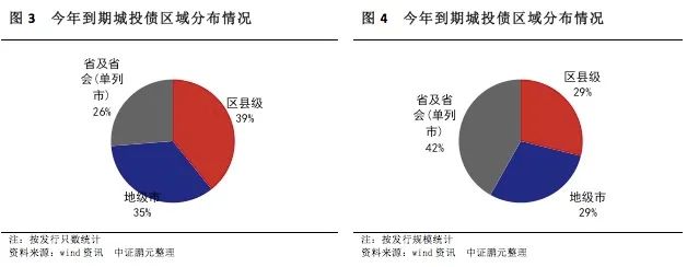 2021年到期城投債行政級別分布來看,區(qū)縣級城投到期債券只數(shù)和規(guī)模分別為2481只和11464.86億元,占比分別為39.24%和28.87%,分別同比上升49.91%和67.56%;地級市城投到期債券只數(shù)和規(guī)模分別為2180只和11630.28億元,占比分別為34.48%和29.28%,分別同比上升44.66%和62.74%;省及省會城投到期債券只數(shù)和規(guī)模分別為1661只和16619.38億元,占比分別為26.27%和41.85%,分別同比上升53.94%和59.25%。一般而言,城投債風險隨行政級別的上升而下降,今年城投債到期規(guī)模呈現(xiàn)逐級遞增態(tài)勢,城投債信用風險總體可控。