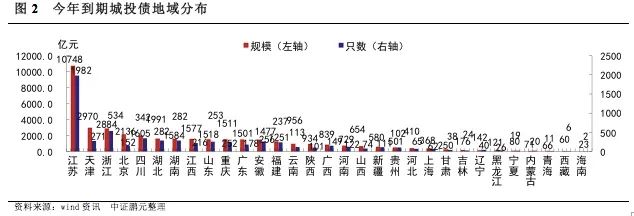 1、今年城投債到期只數(shù)6322只,規(guī)模39714.52億元,分別比2020年上升49.00%和62.58%,處于近年來高點,城投債到期償還壓力較大。地域上到期城投債以江蘇居首,其次為天津,浙江居第三位。從行政區(qū)域來看,城投債到期規(guī)模呈現(xiàn)逐級遞增態(tài)勢,信用風險總體可控。到期城投債中低評級主體較少,高評級占據(jù)了主體地位。去年以來主體級別發(fā)生過調整的發(fā)行人共97家,有92家出現(xiàn)上調,有5家出現(xiàn)下調,有119只債券債項級別發(fā)生過調整,有819只為擔保債券,占比12.95%。