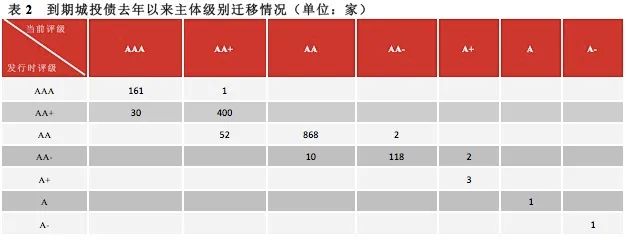 從級別調整來看,去年以來主體級別發(fā)生過調整的發(fā)行人共97家,其中,有92家出現(xiàn)上調,由AA+級上調到AAA級的有30家,由AA級上調到AA+級的有52家,由AA-級上調到AA級的有10家;有5家出現(xiàn)下調,由AAA級下調到AA+級有1家,為海南省發(fā)展控股有限公司;由AA級下調到AA-級有2家,分別為文山城市建設投資(集團)有限公司、貴州水城經(jīng)濟開發(fā)區(qū)高科開發(fā)投資有限公司;由AA-級下調到A+級有2只,分別為金昌市建設投資開發(fā)(集團)有限責任公司、四川金財金鑫投資有限公司。另外,去年以來債項級別發(fā)生過調整的債券共119只,其中,有117只發(fā)生上調,由AA+級上調到AAA級的債券有48只,由AA級上調到AA+級的債券有69只,有2只發(fā)生下調,由AA級下調到AA-級的債券有2只,分別為16文山債、18水城高科債。