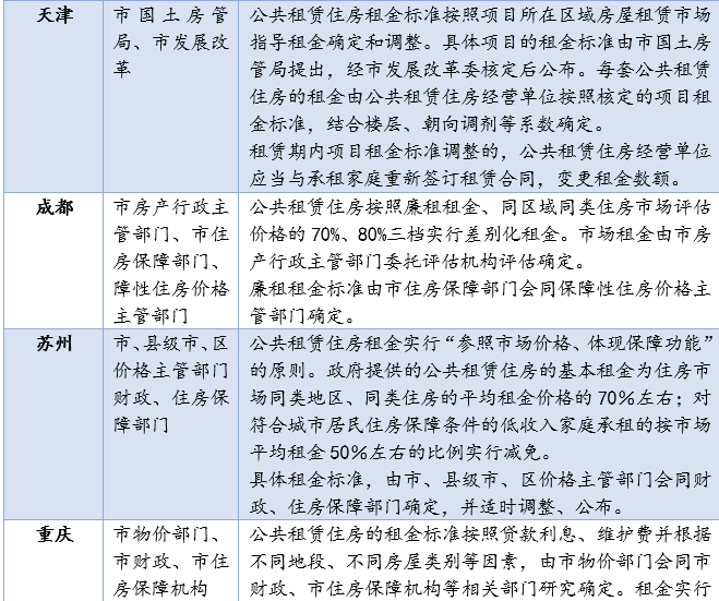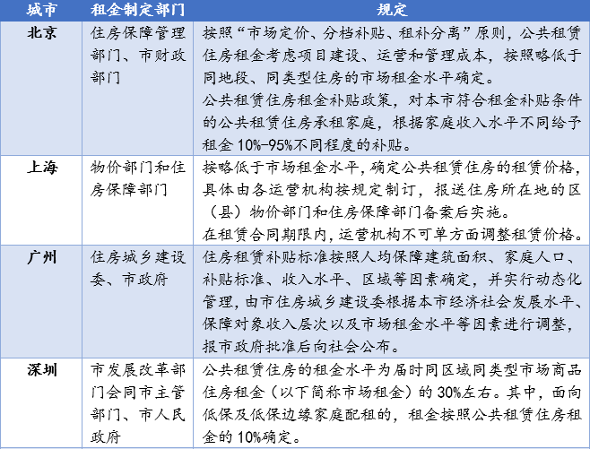 下表列舉了幾個熱點城市租金規(guī)定情況: