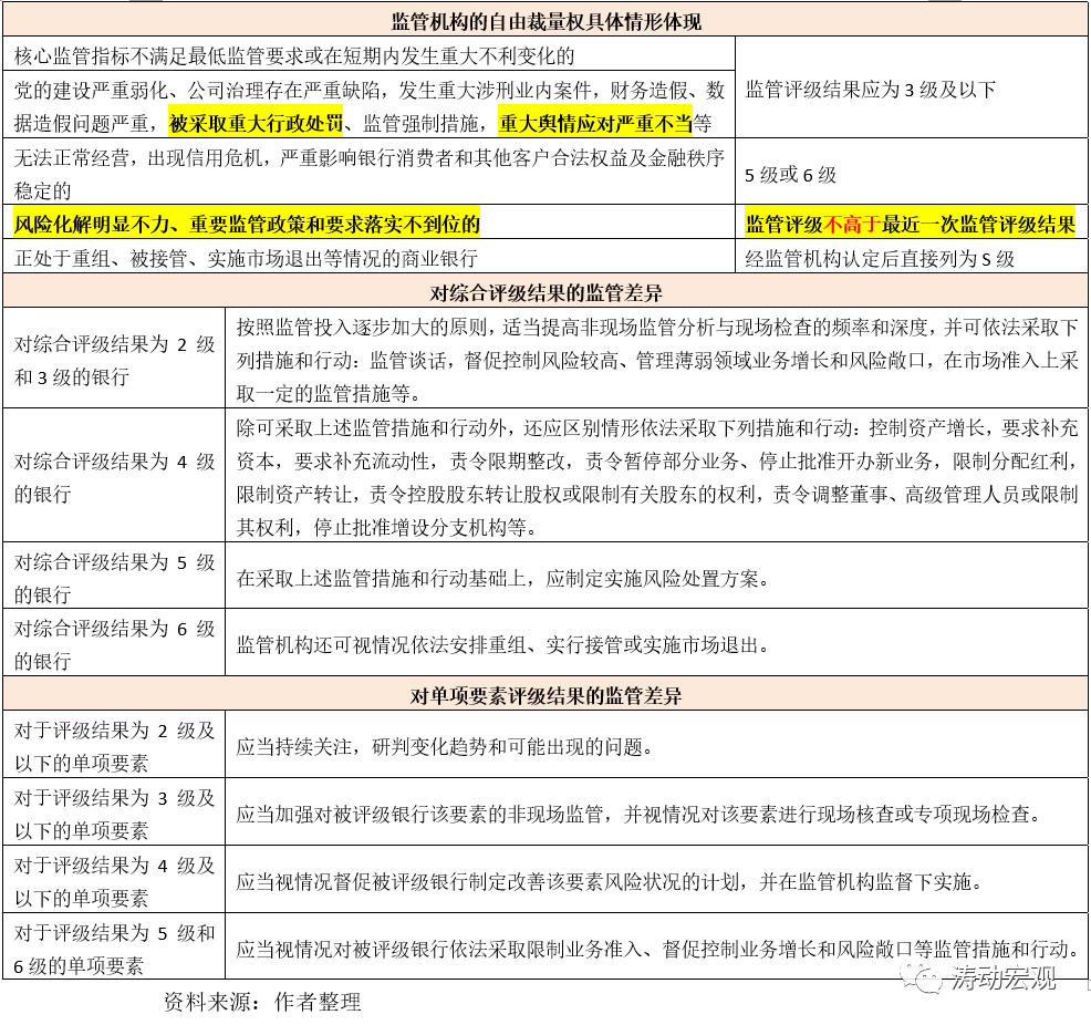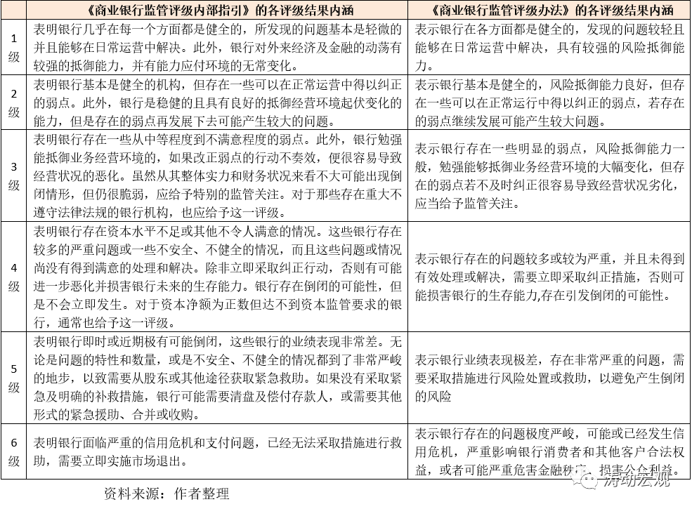 (5)監(jiān)管機(jī)構(gòu)可根據(jù)評(píng)級(jí)結(jié)果的差異,采取不同的監(jiān)管舉措,一般根據(jù)評(píng)級(jí)檔次的高低,按照監(jiān)管投入逐步加大的原則,適當(dāng)提高監(jiān)管力度。目前來(lái)看,只有評(píng)級(jí)結(jié)果為1級(jí)的銀行,才可以豁免相應(yīng)監(jiān)管。