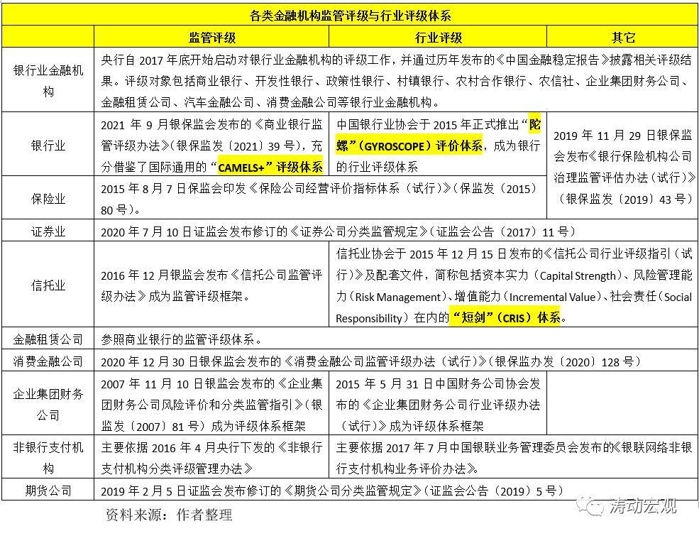 原標(biāo)題: 各類金融機(jī)構(gòu)監(jiān)管評(píng)級(jí)體系大全(2021年版)