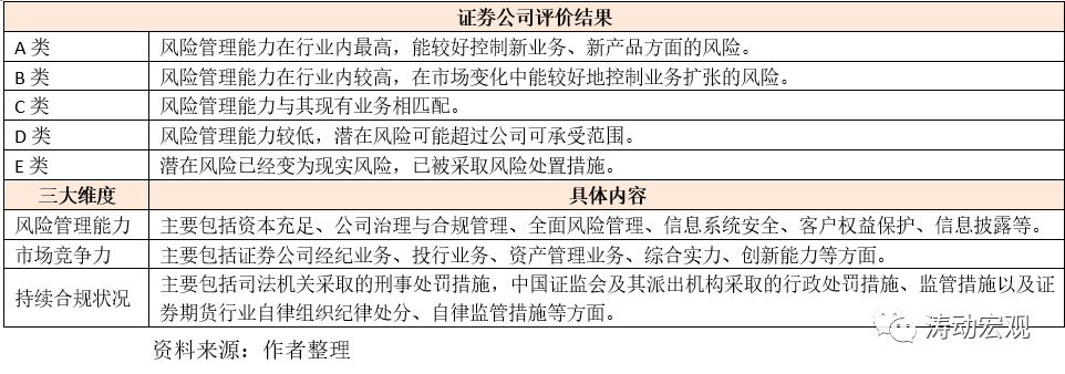 3、證券公司分類結(jié)果將作為證券公司申請(qǐng)?jiān)黾訕I(yè)務(wù)種類、新設(shè)營(yíng)業(yè)網(wǎng)點(diǎn)、發(fā)行上市等事項(xiàng)的審慎性條件,并將作為確定新業(yè)務(wù)、新產(chǎn)品試點(diǎn)范圍和推廣順序的依據(jù),因此對(duì)于券商本身而言極其重要。同時(shí)不同級(jí)別的證券公司繳納證券投資者保護(hù)基金的比例也有所不同。對(duì)評(píng)判公司的評(píng)價(jià)主要分為風(fēng)險(xiǎn)管理能力、市場(chǎng)競(jìng)爭(zhēng)力和持續(xù)合規(guī)狀況等三大維度。而從評(píng)價(jià)結(jié)果來(lái)看,具體如下,