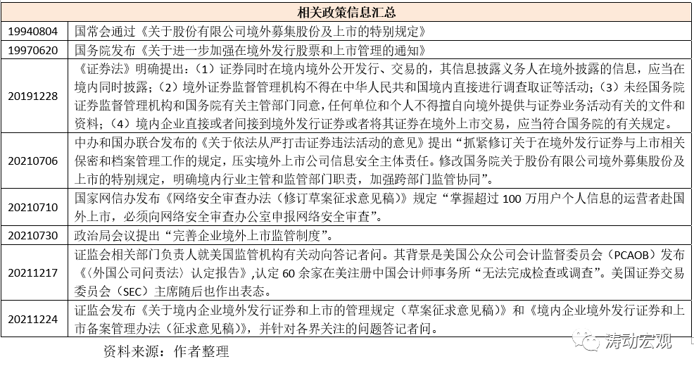 (一)近期隨著中美在資本市場的角逐、美股市場對極致信息披露的要求、美國對中概股的歧視性監(jiān)管以及中國對國家安全的考慮,境內(nèi)企業(yè)在海外上市引起一定程度熱議甚至非議,部分擬赴美上市公司暫停了上市進程,部分企業(yè)則選擇了港股二次上市。同時企業(yè)、中介機構、境內(nèi)外投資者等市場主體亦都十分關注境外上市監(jiān)管制度。比較有代表性的兩個事件如下: