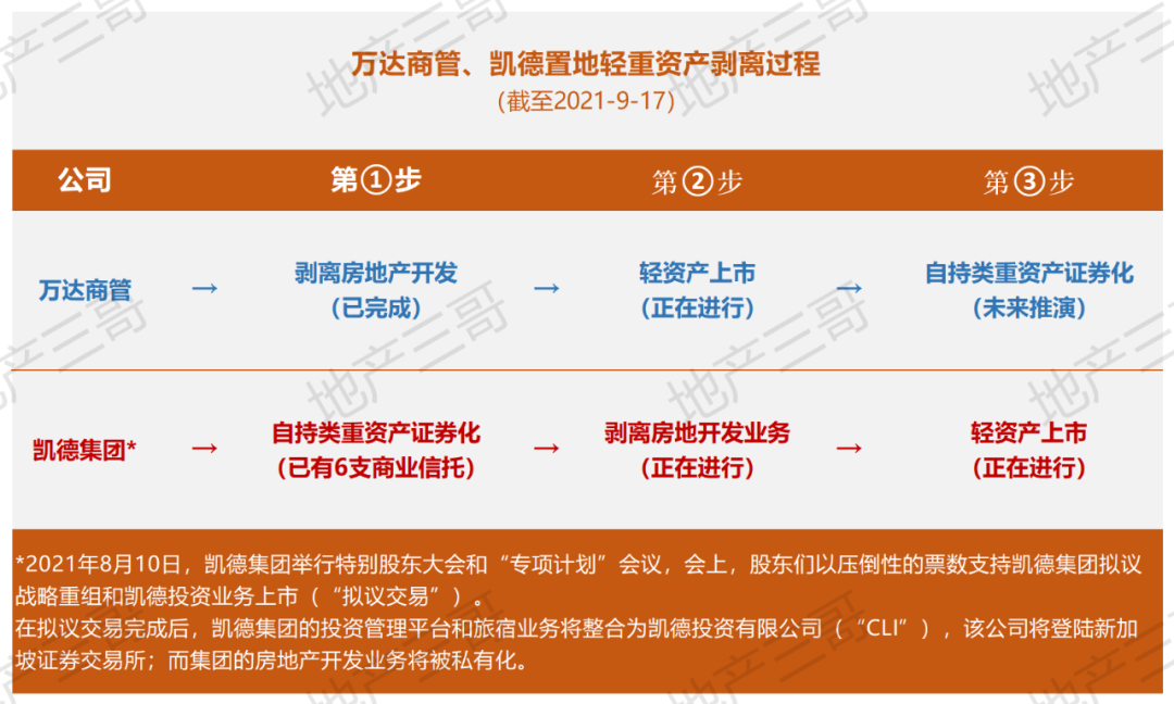 不同的是,萬達剝離開發在前,而凱德集團將商業地產的資產證券化在前,但是殊途同歸,最終都是輕重資產分離: