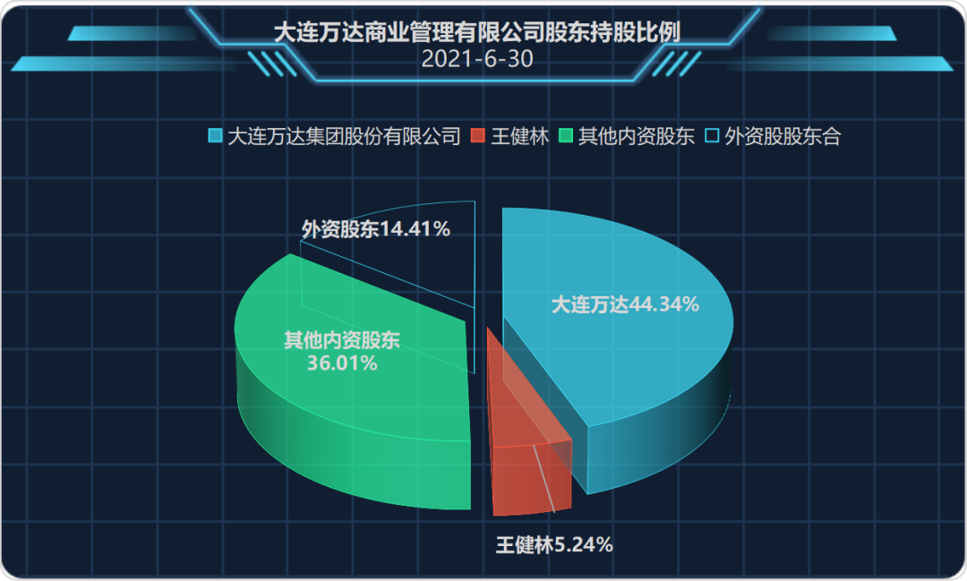 萬達地產的大股東穿透到在香港注冊的萬達百貨,萬達地產是王健林家族絕對控制的。